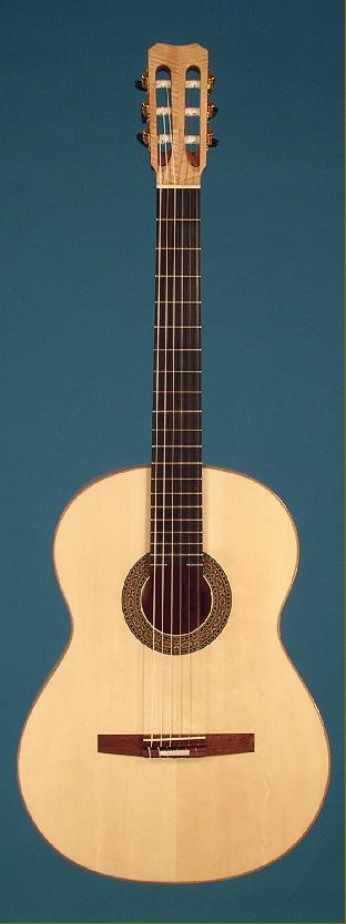 Il mio modello base ha un diapason di 650mm. Il piano armonico e' fatto di abete (picea abies), il fondo e le fasce di acero marezzato (acer pseudoplatanus), il manico di mogano, il ponticello di acero o di noce. E' caratterizzato da un suono estremamente chiaro e ben equilibrato. I suoni sono ben distinti e hanno una perfetta proiezione in tutti i registri, ma allo stesso tempo mantengono tutti i loro ricchi e caldi colori. Tutte le mie chitarre sono fatte di legni naturalmente stagionati e lavorati esclusivamente a mano, sono completamente verniciate con gomma lacca e, dal punto di vista estetico, non esistono due chitarre identiche.